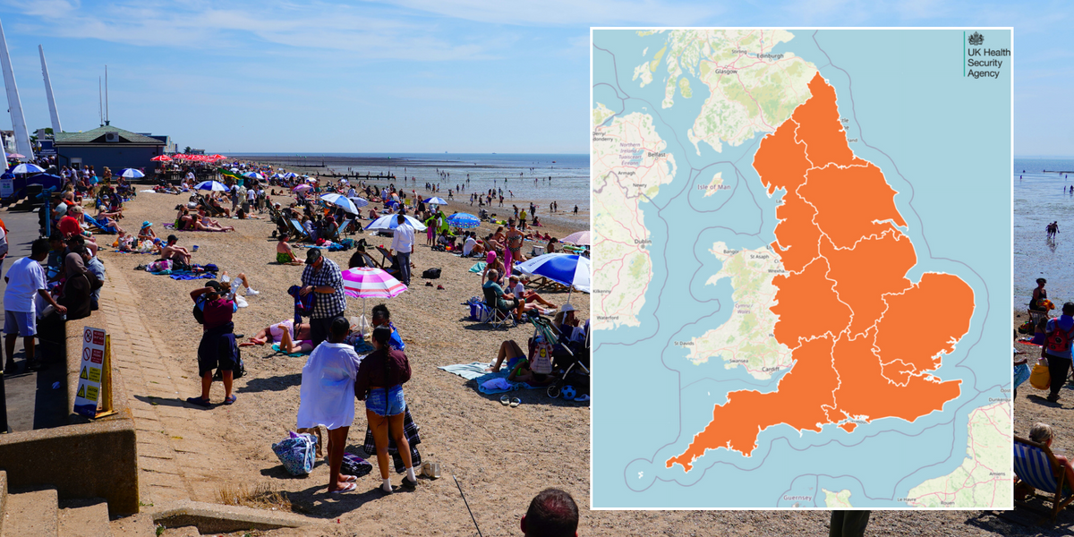 From midday, the UK Health Security Agency (UKHSA) has placed the warning over all regions of the country – which will last until 9am on Monday.