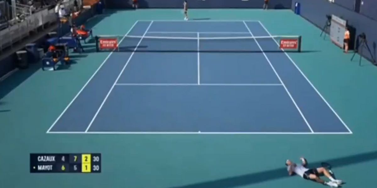 Frenchman Arthur Cazaux was forced to retire from his Miami Open qualifier against Harold Mayot after collapsing to the floor in the third set.